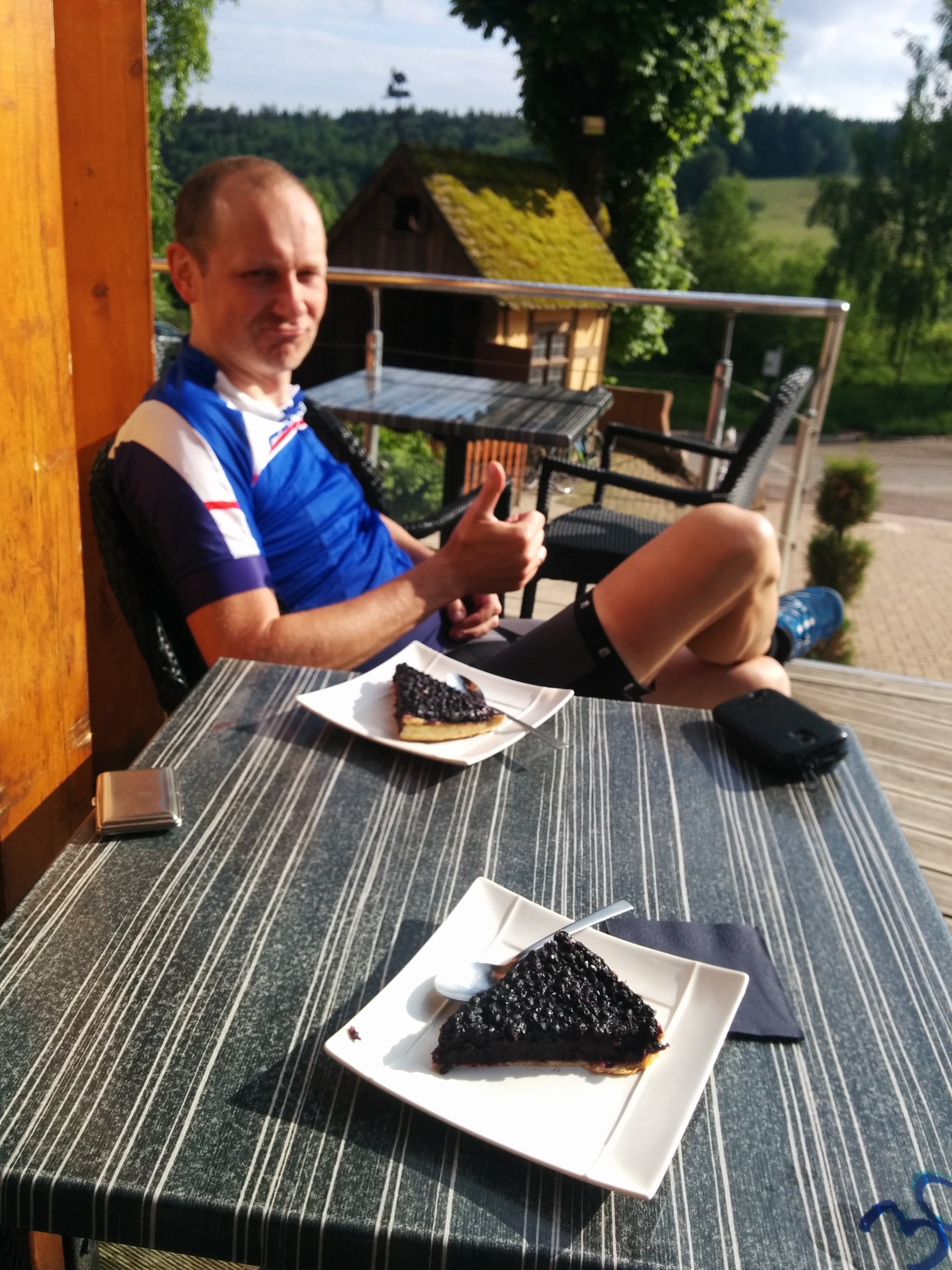 Abschließend gab es auf dem knapp 800 m dem Col de „Schwitz“ noch Blaubeertörtchen und zwei „Hefekaltschalen“ in der Höhensonne.