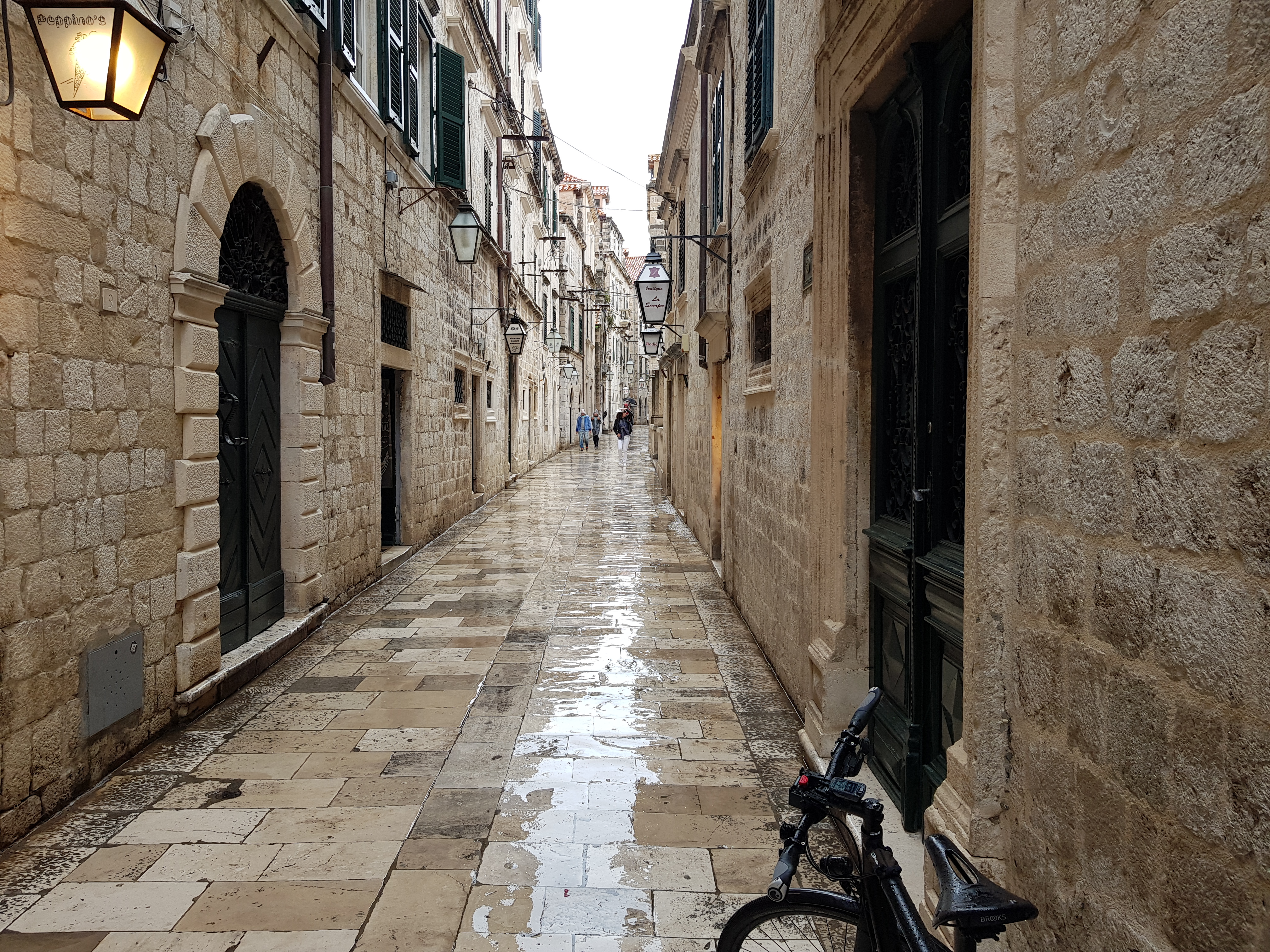 Nachdem die Kleidung auch in der Nacht nicht trocknete, habe ich morgens früh gepackt und bin klamm und kalt erst mal in die Stadt gefahren. Die Altstadt von Dubrovnik ist wirklich schön, aber das haben viele andere Touristen auch schon vor entdeckt. Es wurde schon um 9:00 voll. Also noch einen Espresso und weiter.